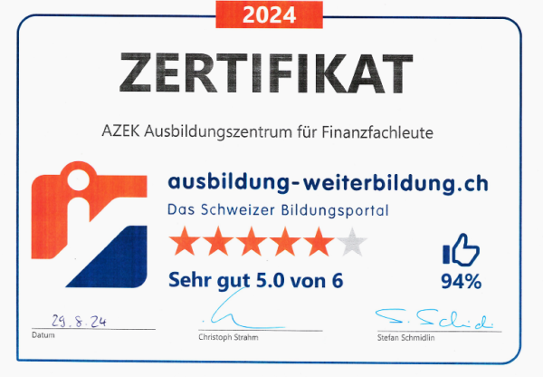 AZEK is a leading provider of financial education in Switzerland. As of today, AZEK has developed more than 10’000 financial professionals to highly qualified specialists in financial analysis & portfolio management, wealth management, financial market operations, financial data science and ESG. The AZEK training programs combine comprehensive theoretical knowledge with a strong practical focus and can also be completed in online format.