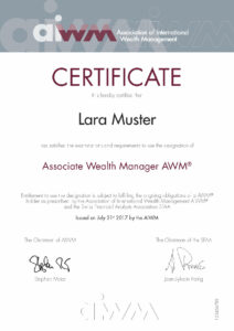 The AWM core knowledge program is intended for all client advisors in private banking/wealth management. Due to the rapidly changing markets and financial products, in particular the regulatory requirements, the advisors constantly need to update and complete their knowledge. The training program covers the necessary core competencies required by client advisors, in particular wealth management, financial instruments as well as law and taxation. On successful completion both the Federal Diploma and the International Certificate of Associate Wealth Manager AWM, recognized in countries in Europe, North America and Asia, are awarded.